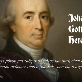 Ο Johann Gottfried Herder (1744–1803) υπήρξε διαπρεπής θεολόγος, ποιητής, κριτικός λογοτεχνίας, αλλά και ένας από τους μεγαλύτερους Γερμανούς φιλοσόφους που ανέδειξε το ρεύμα του Αντιδιαφωτισμού. Βασικός εκπρόσωπος του πνευματικού κινήματος του Ρομαντισμού, εξέλαβε την φυσική Ιεραρχία...