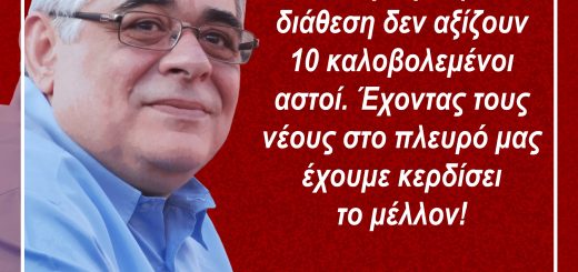 ΔΥΣΤΥΧΩΣ ΔΕΝ ΜΠΟΡΩ ΝΑ ΠΡΟΣΦΕΡΩ ΤΙΠΟΤΑ,ΜΟΝΟ ΤΗΝ ΑΓΑΠΗ ΜΟΥ ΓΙΑ ΤΟΝ ΕΘΝΙΚΙΣΜΟ,ΕΓΩ ΟΜΩΣ ΠΗΓΑΙΝΩ ΠΙΟ ΠΕΡΑ ΚΑΙ ΑΓΑΠΩ ΤΟΝ ΕΘΝΙΚΟΣΟΣΙΑΛΙΣΜΟ,ΕΙΜΑΙ ΟΜΩΣ 76 ΕΤΩΝ ΚΑΙ ΑΝΑΠΗΡΟΣ ΜΕ 85% ΓΙΑ ΑΥΤΟ ΜΟΝΟ ΤΙΣ ΙΔΕΕΣ ΜΟΥ ΜΠΟΡΩ ΝΑ ΠΡΟΣΦΕΡΩ,ΧΑΙΡΕΤΩ ΣΥΝΑΓΩΝΙΣΤΑΙ ΧΡΗΣΤΟΣ Ε. ΚΟΛΕΣΚΑΣ.-