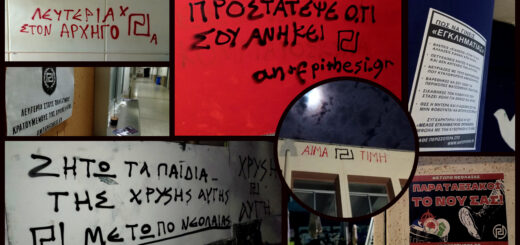 Τις πρωινές ώρες του Σαββάτου, όμως, οι γειτονιές αυτές έγιναν ξανά ελληνικές, με τις Γαλανόλευκες και τα Μαυροκόκκινα Λάβαρα να ανεμίζουν περήφανα, ενώ το κέντρο των Αθηνών σειόταν από τα συνθήματα που βροντοφώναζαν οι Έλληνες Εθνικιστές. Παράλληλα, μέλη του Μετώπου Νεολαίας έκαναν απολύτως εμφανές το επιβλητικό πέρασμα του Εθνικιστικού Κινήματος, γράφοντας με σπρέι πλήθος συνθημάτων σε όλες τις γειτονιές αυτές. Συνθήματα τα οποία έμειναν εκεί για να θυμίζουν σε κάθε προδότη και ανθέλληνα ότι η Χρυσή Αυγή είναι εδώ! Συνεχίζει τον τιτάνιο Εθνικό Αγώνα πιο δυνατή και αποφασισμένη από ποτέ, χωρίς να λυγίζει στιγμή, και δεν πρόκειται να κάνει ούτε βήμα πίσω μέχρι την τελική Νίκη!