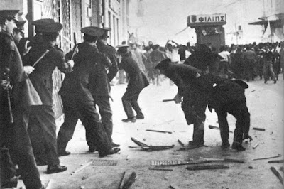 Μέρος των διαμαρτυρομένων κατευθυνόταν προς την βρετανική πρεσβεία και στην οδό Δραγατσανίου όπου είχαν στηθεί οδοφράγματα. Εκεί οι γενναίες μάχες των ανδρών της τιμής με τις αστυνομικές δυνάμεις του ψευτοεθνάρχη Καραμανλή, παρέδωσαν στην αιματοβαμμένη ιστορία του ενωτικού αγώνος πάνω από 250 τραυματίες και τρεις μάρτυρες που δολοφονήθηκαν από σφαίρες αστυνομικών έχοντας αψηφήσει τα… ”μετριοπαθή” κελεύσματα της “ρεαλιστικής πολιτικής” της εποχής (πολλές ομοιότητες με το σήμερα, ένα σήμερα Ιμίων και “συνεκμετάλλευσης”). Οι τρεις νέοι πέρασαν στο ανυπέρβλητο στάδιο της περίλαμπρης θυσίας για την εθνική ιδέα και την ολοκλήρωσή της, μολονότι 3 χρόνια μετά, ο μειοδότης πρωθυπουργός υπέγραφε τις προδοτικές συμφωνίες Ζυρίχης Λονδίνου, που απετέλεσε λίαν αποφασιστικό χτύπημα στον Ελληνισμό του νησιού της Αφροδίτης.