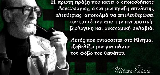 […] Την Παρασκευή 8 Δεκεμβρίου και ώρα 20:00 θα πραγματοποιηθεί ανοιχτή Ιδεολογική ομιλία στον Εθνικιστικό πολυχώρο ΣΑΡΙΣΑ της Τ.Ο. Θεσσαλονίκης με αφορμή την συμπλήρωση 85 ετών από την εκτέλεση του Ρουμάνου Εθνικιστή, Κορνέλιου Ζέλεα Κονρεάνου. Ο Κοντρεάνου υπήρξε πρωτοπόρος στην οικοδόμηση ενός κινήματος που ανέδειξε την σύνδεση της Ορθόδοξης πνευματικότητας με την Εθνικιστική Ιδέα, προσφέροντας νέο τρόπο ζωής στην Νεολαία. Η ζωή, ο αγώνας και το ήθος του αποτελούν ένα διδακτικό πρότυπο, ως το πλησιέστερο στα Ελληνικά δεδομένα εκ των Ευρωπαϊκών ιδεολογικών ρευμάτων του μεσοπολέμου. Στον χώρο θα είναι επίσης διαθέσιμο προς πώληση, πριν την έναρξη της ομιλίας, η πρώτη και μοναδική μετάφραση του βιβλίου του αρχηγού της Λεγεώνας του Αρχαγγέλου Μιχαήλ «Για τους Λεγεωνάριούς μου». […]