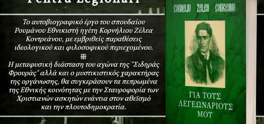 Δεν είναι λίγες οι φορές που ως Εθνικιστές αντιμετωπίζουμε προπαγανδιστικές επιθέσεις που αμφισβητούν την πίστη μας στην αξία της Θρησκείας, όπως αυτή έχει εκφραστεί ήδη από το 1992 στην σχετική διακήρυξη του Κινήματος μας («Για μια Μεγάλη Ελλάδα σε μια ελεύθερη Ευρώπη»). Κάθε λογής πολικάντηδες αλλά και αριστεροτραφείς θεολόγοι εμφανίζονται συχνά να ωρύονται εναντίον της Χρυσής Αυγής, ισχυριζόμενοι πως η Χριστιανική διδασκαλία (στην οποία δεν πιστεύουν) και η Ορθόδοξη Εκκλησία (στην οποία δεν πατάνε εκτός εκλογών) δεν συμβαδίζει με τις Εθνικιστικές Ιδέες. Πολλά είναι εκείνα τα ιστορικά παραδείγματα που διαψεύδουν τους παραπάνω τσαρλατάνους. Ένα από τα πιο χαρακτηριστικά είναι βεβαίως αυτό του Κορνήλιου Κοντρεάνου, το οποίο όμως είναι δυστυχώς άγνωστο στο ευρύ κοινό και μόνο χάρη στο έργο του Κινήματος μας έχει αναδειχθεί τα τελευταία χρόνια.