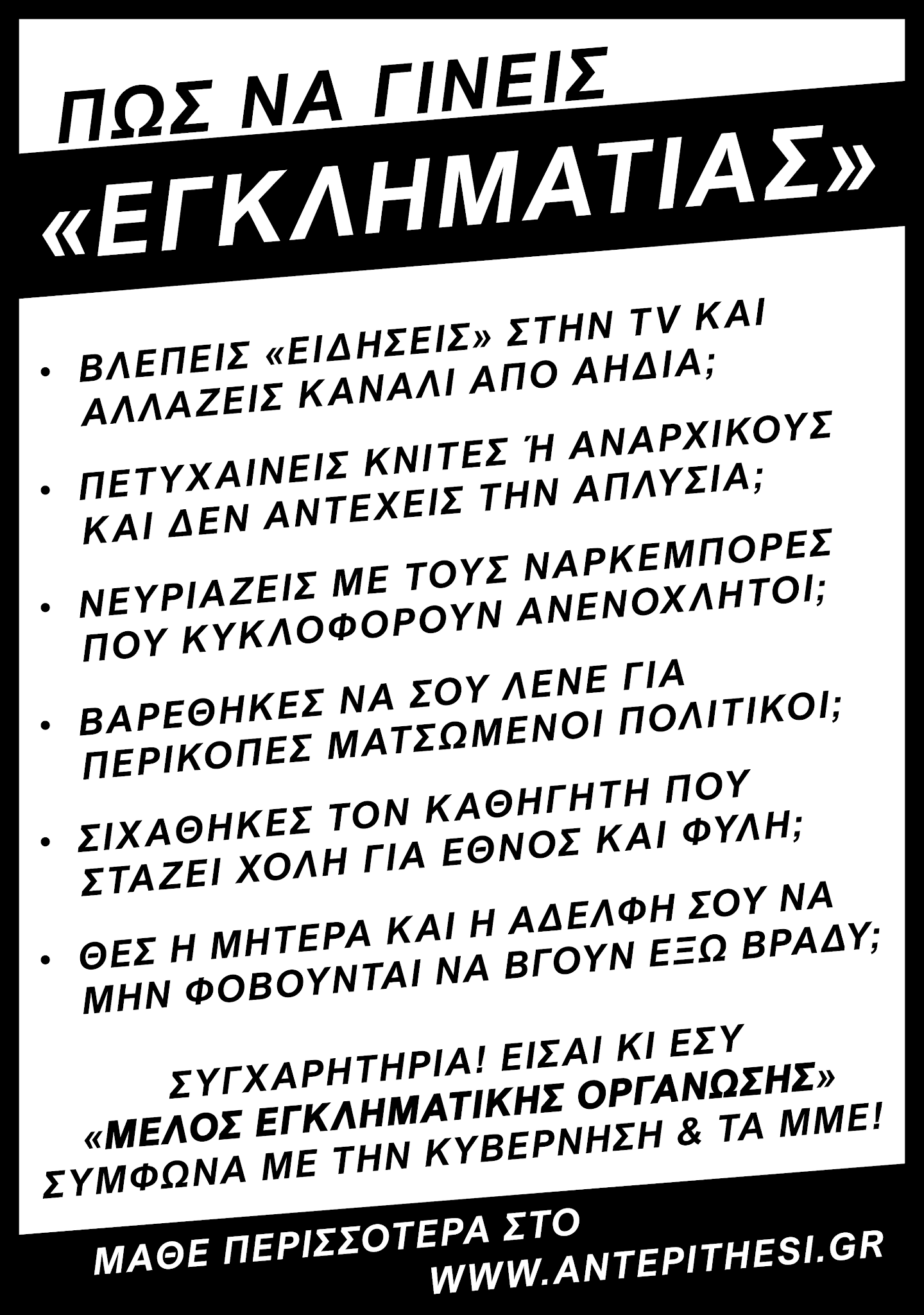 Στείλε φωτογραφίες από την δράση σου με e-mail στο info@antepithesi.gr και ανέδειξε τον Εθνικισμό στην περιοχή σου!