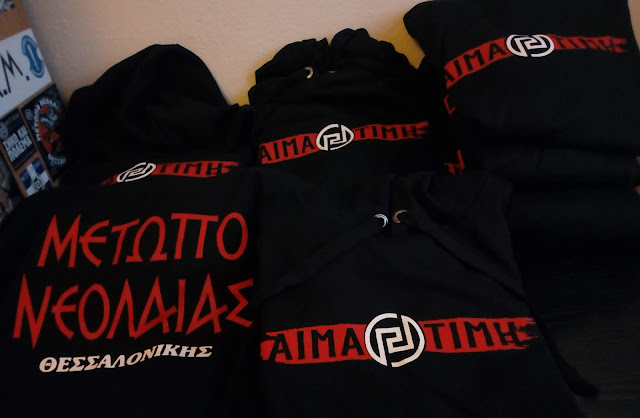 Νέες μπλούζες τύπου φούτερ για τα μέλη του Μετώπου Νεολαίας Θεσσαλονίκης διαθέσιμες κάθε Παρασκευή 19:00 στο Εθνικιστικό Στέκι “ΣΑΡΙΣΑ”.