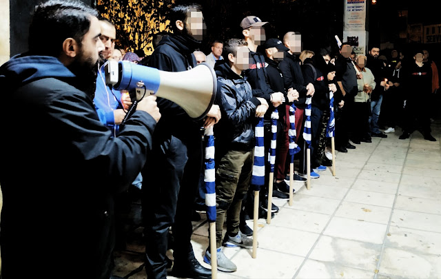 Ακολούθησε δυναμική εξόρμηση με ανάρτηση πανό σε αερογέφυρα και αναγραφή συνθημάτων στην πόλη.