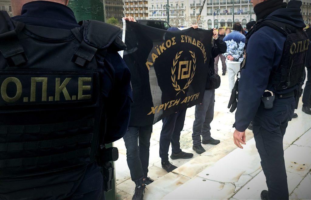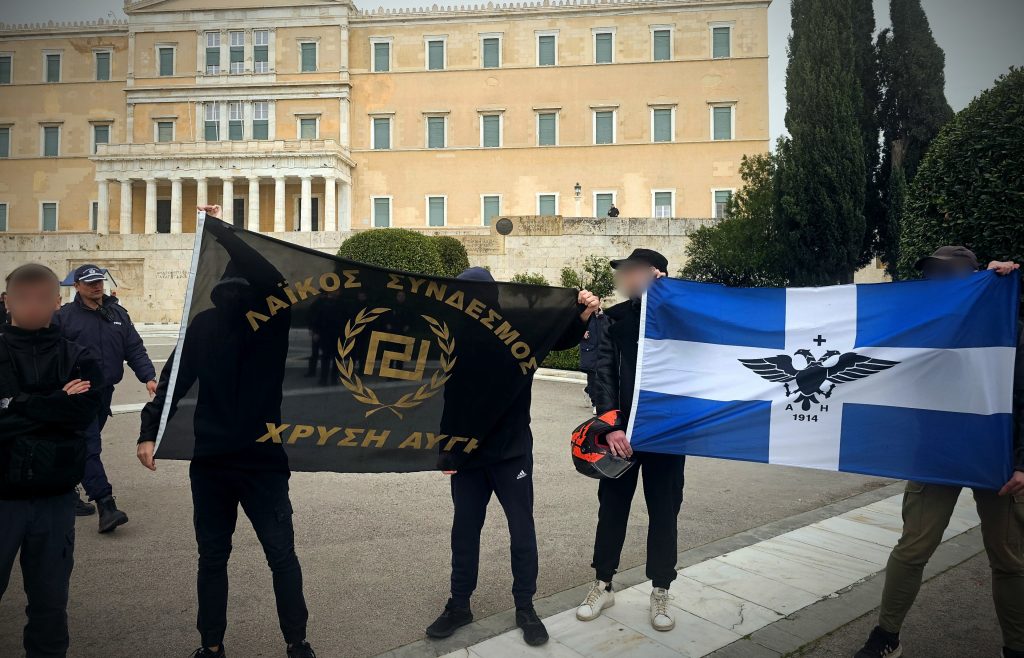 Παρ’ όλα αυτά, όπως και κάθε χρόνο, οι Έλληνες Εθνικιστές στηρίξαμε την καθιερωμένη εκδήλωση και πορεία. Κι όμως, ως απόκριση σε αυτή την συνεπή στάση του Κινήματος μας, δυνάμεις της ΕΛ.ΑΣ. εμπόδισαν στο κλιμάκιο να προσεγγίσει το μνημείο του Αγνώστου Στρατιώτη λόγω… «άνωθεν εντολών». Η αμηχανία των ανδρών της αστυνομίας ήταν εμφανής, προφανώς αντιλαμβανόμενοι τον γελοίο ρόλο που τους επιβλήθηκε, αλλά φευ. Κάποιοι έπαθαν ταράκουλο στη θέα του Μαιάνδρου. Γνωρίζουν ότι μόνο το αρχαίγονο έμβλημα μας είναι ικανό να αφυπνίσει το ασυμβίβαστο, επαναστατικό πνεύμα των Ελλήνων. Άλλωστε, δεν είναι τυχαίο πως τα συνθήματα που λέγονται, ομόφωνα από τους απλούς συμμετέχοντες, προέρχονται κυρίως από την Χρυσή Αυγή. Έτσι, αψηφώντας τις εντολές των όποιων «άνωθεν» νομίζουν πως οι ενοχλήσεις θα μας αποθαρρύνουν, βροντοφωνάζουμε και τώρα και για πάντα: