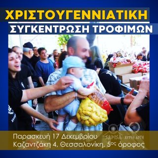 Παρά την αισχρή πολεμική του καθεστώτος και την διαχρονική αποστέρηση πόρων το Λαϊκό Εθνικιστικό Κίνημα της ΧΡΥΣΗΣ ΑΥΓΗΣ επιμένει στο κοινωνικό του έργο. Με αφορμή τις άγιες ημέρες των Χριστουγέννων, η Τοπική Οργάνωση Θεσσαλονίκης...