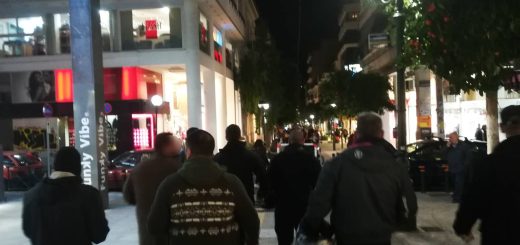 Μία στην Ερμού και δύο φορές στη Ρήγα Φεραίου, όπου είχαν ρίξει κάδους και ότι άλλο βρίσκανε, μες το δρόμο, φτιάχνοντας κάτι που έμοιαζε με οδόφραγμα. Εν πάση περιπτώσει, εμείς απλά θέλαμε να μιλήσουμε στους «συντρόφους», αλλά μάλλον είναι αγοραφοβικοί. Τώρα γιατί αυτοί μετά από καμιά ώρα αφότου είχαμε φύγει, (γύρους τα τετράγωνα του κέντρου για να σας προλάβουμε, θα κάνουμε όλη νύχτα; Είχαμε και δουλειές το πρωί!), τριγύριζαν με κράνη στην Πάτρα προκαλώντας ζημιές, ένας Θεός ξέρει. Από την άλλη, σήμερα το πρωί, στην ιστοσελίδα τους γράφανε ότι «7-8 (!) αναρχικοί απωθήσανε (!) 25 Χρυσαυγίτες».