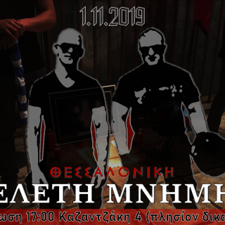 Ημερομηνία: Παρασκευή, 1 Νοεμβρίου 2019 – 17:00Περιοχή: Θεσσαλονίκη1 Νοεμβρίου 2013 αριστεροί τρομοκράτες δολοφονούν δυο νέα παιδιά 27 και 22 ετών, τον Γιώργο Φουντούλη και τον Μανώλη Καπελώνη.6 χρόνια μετά οι δολοφόνοι κυκλοφορούν ακόμα ατιμώρητοι...