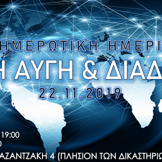 Την Παρασκευή 22 Νοεμβρίου 2019 και ώρα 20:30, στην αίθουσα εκδηλώσεων της Τ.Ο. Θεσσαλονίκης θα πραγματοποιηθεί ημερίδα με θέμα «Χρυσή Αυγή & διαδικτυακή ενημέρωση» με ομιλία του Συναγωνιστή Θανάση Κουράκου από την Αθήνα. Τ.Ο....
