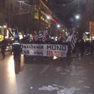 Το Μέτωπο Νεολαίας Θεσσαλονίκης πραγματοποίησε συγκέντρωση και πορεία στο κέντρο της πόλης διαδηλώνοντας υπέρ της Ελληνικότητας της Μακεδονίας.