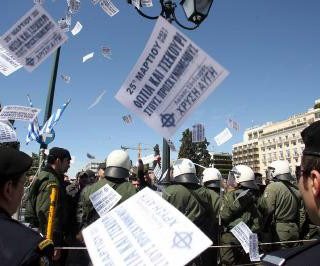 Δράση του Μετώπου Νεολαίας, μετά το πέρας της παρελάσεως της 25ης Μαρτίου στην Αθήνα.