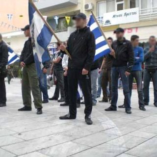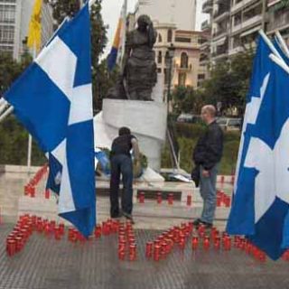 Εθνικιστική συγκέντρωση για την εργατική Πρωτομαγιά στην πλατεία Επταλόφου, στην Θεσσαλονίκη.