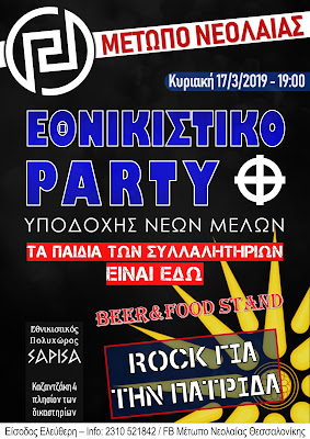 Την Κυριακή 17 Μαρτίου το Μέτωπο Νεολαίας Θεσσαλονίκης πραγματοποίησε Εθνικιστικό πάρτυ στο εθνικιστικό στέκι της πόλης «Σάρισα» γιορτάζοντας τους μέχρι τώρα αγώνες αλλά και τον πολλαπλασιασμό των μελών μας μέσα σε μόλις ένα χρόνο.