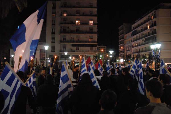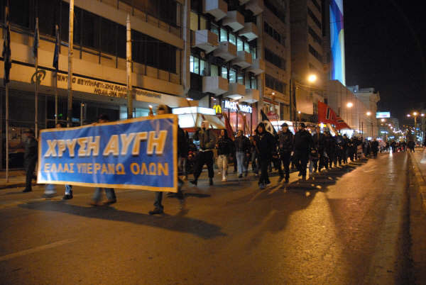 Η Χρυσή Αυγή διοργάνωσε δυναμική συγκέντρωση με κατάθεση στεφάνου στο άγαλμα του αξιωματικού Βλαχάκου στον Πειραιά. Κατόπιν, ακολούθησε πορεία στους δρόμους της πόλης.